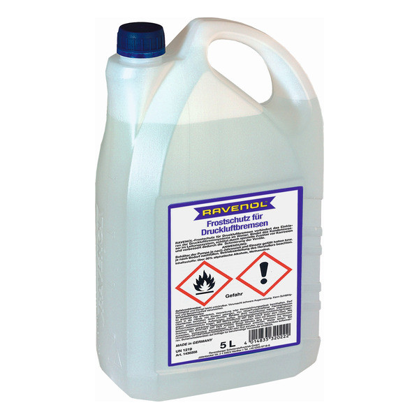 RAVENOL Frostschutz für Druckluftbremsen специально разработанный антифриз для пневматических тормозных систем, препятствующий образованию кристаллов льда в тормозных шлангах и ресиверах пневматической тормозной системы грузовых автомобилей, автобусов, строительной, сельскохозяйственной и прочей техники.
