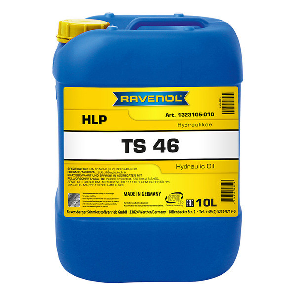 RAVENOL Hydraulikoel TS 46 (HLP) – минеральное гидравлическое масло класса HLP. Благодаря применению высококачественного базового масла и специального комплекса присадок обеспечиваются хорошие вязкостно-температурные характеристики и надежная защита от коррозии и износа при высоких нагрузках, а также нейтральное отношение к уплотнительным материалам.