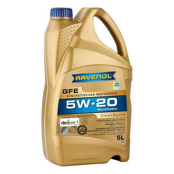 RAVENOL GFE SAE 5W-20 синтетическое легкотекучее моторное масло, изготовленное с применением технологии CleanSynto® для легковых бензиновых и дизельных двигателей с и без турбонаддува и прямым впрыском топлива.