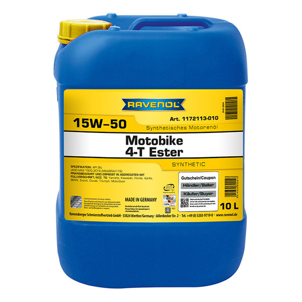 RAVENOL Motobike 4-T Ester SAE 15W-50 - это синтетическое современное моторное масло, специально разработанное для 4-х тактных двигателей мотоциклов. Обеспечивает экономию топлива.