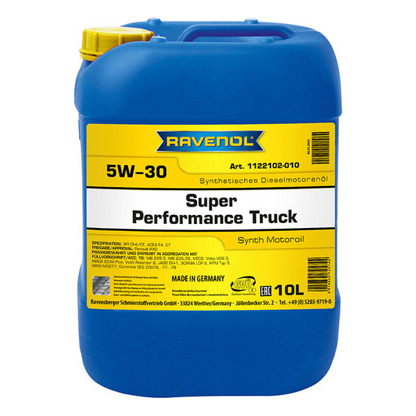 RAVENOL Super Performance Truck SAE 5W-30 – высоколегированное легкотекучее моторное масло USHPD - класса на базе синтетических базовых масел со специальных пакетом присадок для круглогодичного использования в высоконагруженных турбодизелях грузовых автомобилей, автобусов, строительной техники.