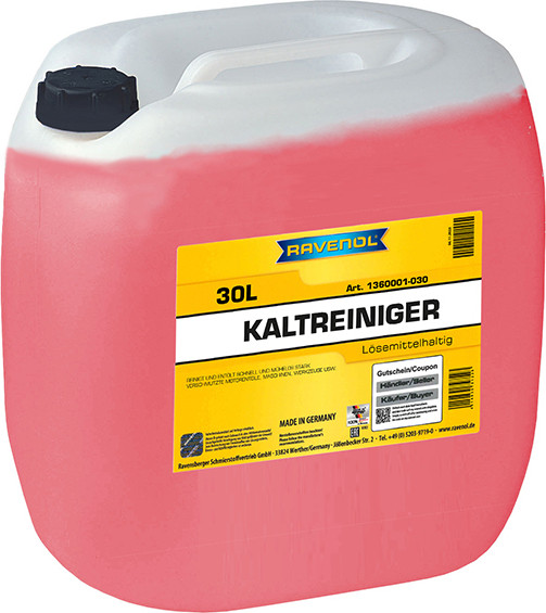 RAVENOL Kaltreiniger - средство для мойки двигателя и моторного отсека автотранспорта. Содержит в своём составе растворители, удаляющие масло, смазки, копоть, сажу и грязь. Обезжиривает – удаляет – очищает - защищает