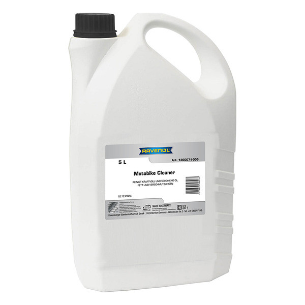 RAVENOL Motobike Cleaner без труда удаляет такие загрязнения, как дорожную пыль, масло, смазку, пыль от тормозных колодок и т.д. с мотоциклов, скутеров или квадроциклов. Особенно подходит для использования на пластиковых покрытиях, обивке, тканях или деталях двигателя/рамы и металлических поверхностях. (Если чистка включает кожаные поверхности, их необходимо повторно обработать специальными увлажняющими средствами для кожи).