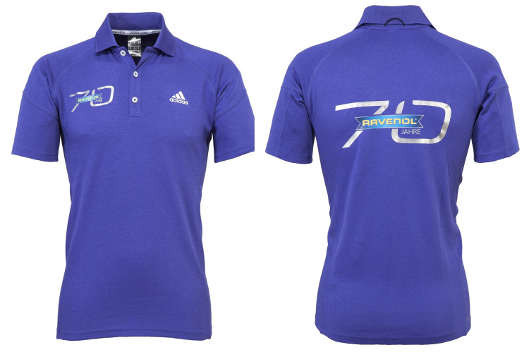 • Логотипы: "70 Jahre RAVENOL" справа на груди и на спине, ADIDAS слева на груди