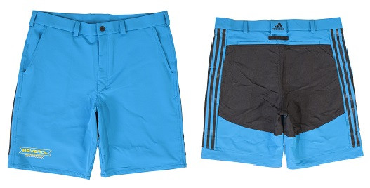 • Логотипы: "RAVENOL Motorsport" на правой ноге, "ADIDAS" сзади на поясе