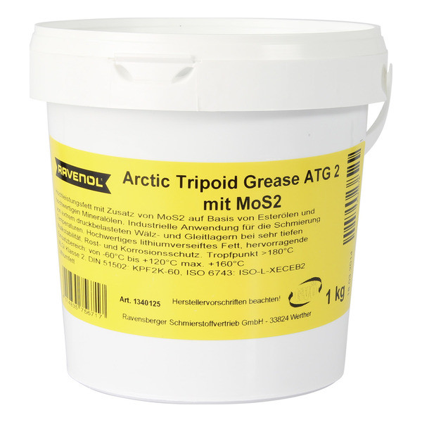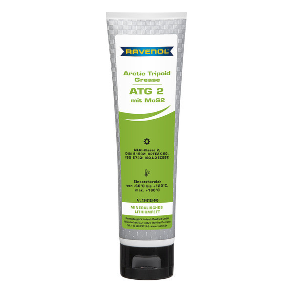 RAVENOL Arctic Tripoid Grease ATG 2 mit MoS2 - полностью синтетическая, специально разработанная смазка на основе синтетических компонентов (эстеров), полиальфаолефинов, с добавлением минерального масла и присадки MoS2-дисульфид молибдена, загуститель – литиевое мыло.